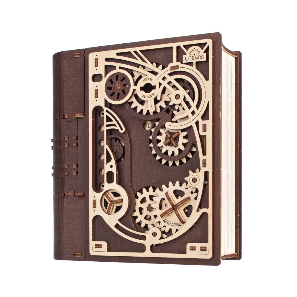 Discover the mystery of mechanics with the UGEARS Book of Secrets – a wooden mechanical safe shaped like a book. Build it, lock it, and keep your treasures hidden in style!