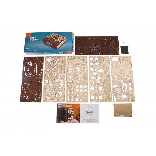 The Book of Secrets features 179 laser-cut wooden parts that fit perfectly together without glue or tools. Each component connects smoothly, offering a satisfying building experience that stimulates patience and precision.