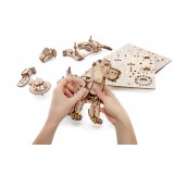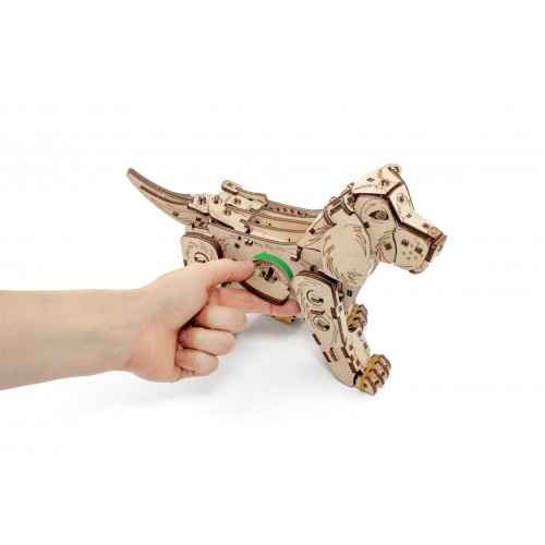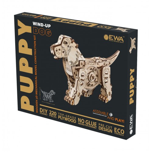 The wooden mechanical construction kit Puppy is an engaging and rewarding activity for both children and adults, featuring an impressive 220 parts that can be assembled to create a charming puppy figure. This kit provides an opportunity for individuals to engage in a fun and educational construction project, fostering creativity, fine motor skills, and problem-solving abilities. The set includes instructions, parts, and tools for assembling the model. After assembly, the puppy winds up and walks wagging its tail.