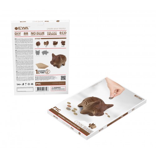 A fun wooden 3D construction kit made of durable, high-quality MDF – PIG COINBANK. Perfect for both kids and adults, it comes with numbered pieces and easy-to-follow instructions. Assembly is easy.