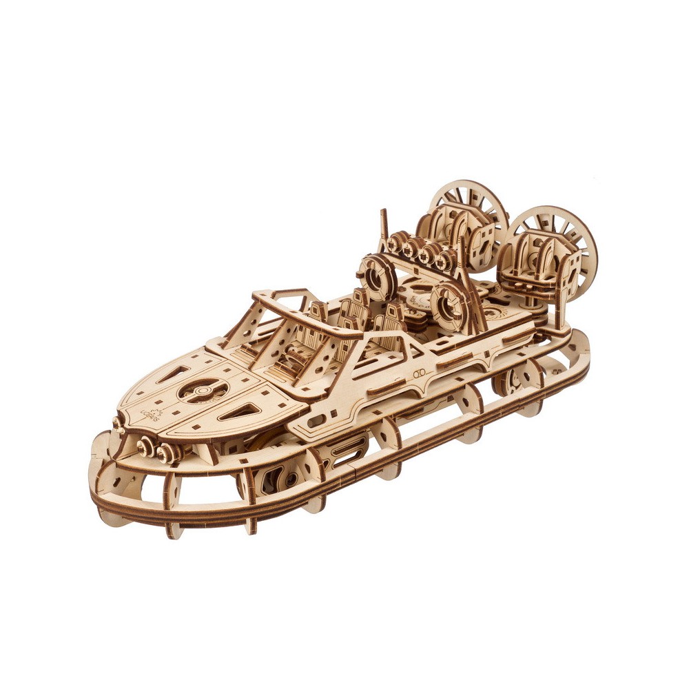 Ugears Rescue Hovercraft yra 1:24 mastelio medinis aptakaus, dviejų sraigtų visureigio orlaivio modelis. Šis „pasidaryk pats“ medinis modelis yra varomas spyruokliniu varikliu, o ant mašinos važiuoklės yra susukamas reketas. Start/Stop jungiklis leidžia pasukti variklį dešimt pasukimų pagal laikrodžio rodyklę, tada įjungti variklį, kai sukasi dvigubi traukos sraigtai ir valtis atlieka grakščius, iš anksto užprogramuotus posūkius į kairę ir į dešinę 3 metrų atstumu, imituodama švelnų siūbavimą. tikrų orlaivių.