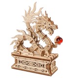 Medinis drakonas iš UGEARS yra 3D dėlionė, kurioje drakonas kairėje letenoje laiko ugningą raudoną perlą. Ilgas, susuktas, keturių rankų medinis drakonas, įkvėptas kinų meno drakonų, sėdi ant specialaus stovo su paslėptu stalčiumi, kuris atsidaro paspaudus slaptą mygtuką, užmaskuotą gėle (stalčius uždaromas rankiniu būdu). Drakonas yra visiškai nuimamas, jį galima pastatyti ant bet kokio paviršiaus ir grožėtis nepriklausomai nuo stovo. Viduje medinio drakono apačioje galite laikyti slaptą žinutę ar nedidelį lobį!