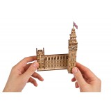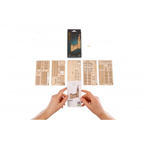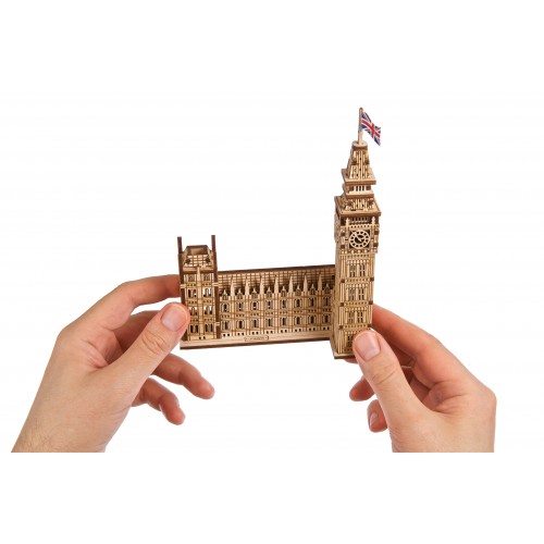 „Ugears Big Ben“ modelis su dalimi Vestminsterio rūmų iš „World Cities“ kolekcijos yra 1:530 mastelio medinis ikoninio laikrodžio bokšto modelis, kurio matmenys yra 137 x 181 x 66 mm. Big Benas, sudarytas iš 63 dalių, pagamintų iš meninės kokybės kompozitinės medienos, yra įvertintas kaip „Lengvas“ ir gali būti pastatytas maždaug per valandą. Modeliui surinkti nereikia klijų ar specialių įrankių, tiesiog prispauskite gabalus ant lazeriu išpjautų lentų ir suspauskite. Iliustruotos instrukcijos 11 kalbų (anglų, vokiečių, ukrainiečių, prancūzų, lenkų, ispanų, portugalų, japonų, italų, kinų ir korėjiečių) palengvina surinkimą. Ši statinė 3D dėlionė puikiai tinka rodyti ant lentynos ar stalo jūsų namuose ar biure.