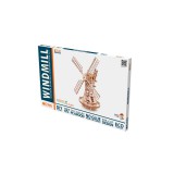 EWA Eco-Wood-Art pagamintas klasikinio vėjo malūno mechaninis medinės konstrukcijos komplektas. Modelis turi suvyniojamą guminės juostos burių sukimo mechanizmą ir atidarytą mechanizmą bokšte.