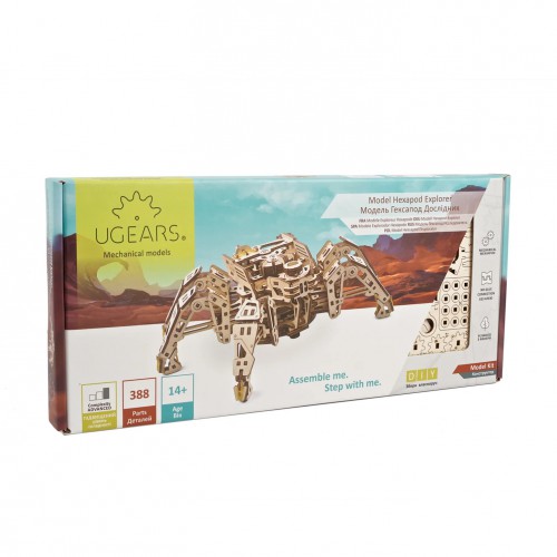 UGEARS Hexapod Explorer – nuostabi dovana technologijų gerbėjui, robotikos entuziastui, vaikui-mokslininkui ar tiesiog žmogui, kuris vertina mechanikos grožį. Jį galima eksponuoti kaip futuristinį objektą, jis puikiai atrodys ant lentynos, bet taip pat kviečia “žaisti”, judėti, stebėti.
