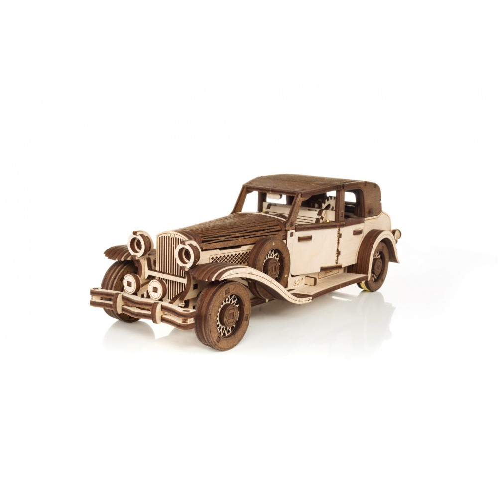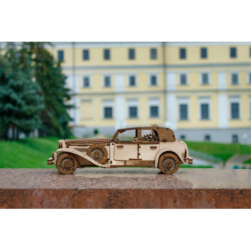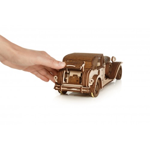 При создании этого конструктора наши инженеры вдохновлялись автомобильной модой 1930-х и 1940-х годов. Модель воссоздает детали классических автомобилей, отражая дух старины. Конструктор оснащен как пружинным двигателем, так и инерционным механизмом, который приводит его в движение после сборки. Его можно завести с помощью ключа в форме чемодана, который помещается в багажнике, а также откатив автомобиль назад. Ретро-автомобиль прекрасно детализирован, у него открываются двери, капот и багажник. Готовая модель послужит не только декоративным элементом, но и настоящим произведением искусства, которое можно продемонстрировать друзьям и близким.