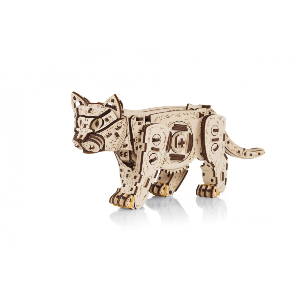 Деревянный механический конструктор с пружинным двигателем. Собрав этого милого котенка, вы можете завести его, и он начнет ходить, как настоящий живой котенок!